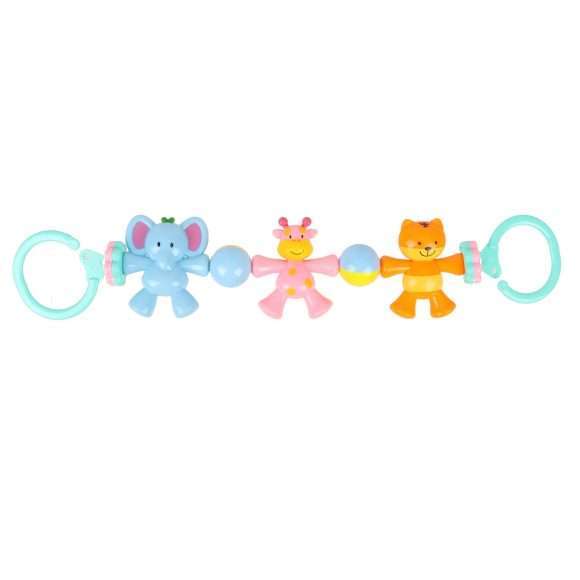 Подвеска-погремушка «Жирафик с друзьями» - это первая игрушка, которую видит малыш. Она притягивает его внимание и радует яркими красками. Подвеска вызывает интерес ребёнка к окружающему миру, помогает в его физическом развитии, участвуя в формировании первых произвольных движений. Эта игрушка является необходимой и незаменимой в жизни детей до 1-го года. Приятный умеренный звук положительно влияет на нервную систему младенца, а сама игрушка развивает координацию движений, зрительное и слуховое восприятие, мелкую моторику, а также знакомит малыша с различными формами и цветами. При помощи специальных креплений в виде колец подвеску можно установить на детскую кроватку или коляску.