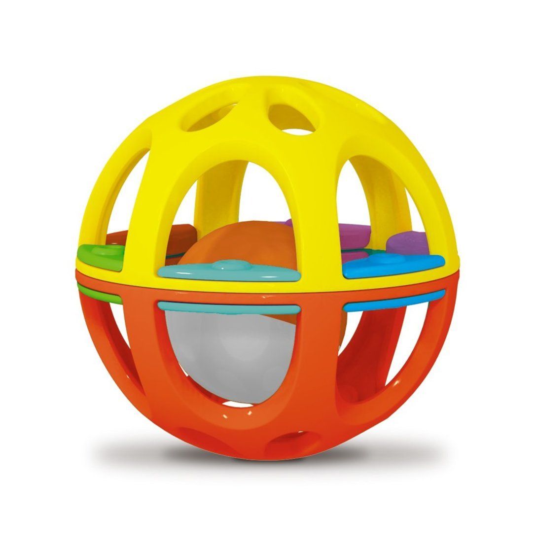 Яркая погремушка-прорезыватель «Шар-2» выполнена в виде мягкой сферы с фигурными отверстиями. Внутри этой сферы находится шарик. При перекатывании или потряхивании игрушка издаёт приятные звуки. Погремушка изготовлена из высококачественных материалов и приятна для осязания. При сжатии, благодаря мягкой структуре шар всегда возвращается в форму идеальной сферы, что непременно понравится малышам. Погремушку-прорезыватель можно не только кусать и сжимать, но также перекатывать. Толкнув шарик, чтобы он откатился от малыша, можно стимулировать желание ребенка дотянуться или доползти до игрушки. Шар очень удобен для удержания детскими ручками, так как имеет фигурные отверстия, идеально подходящие для маленьких пальчиков. Погремушка-прорезыватель «Шар-2» станет самой любимой игрушкой и будет радовать малышей каждый день!