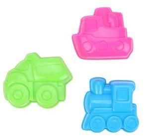 Фигурные формочки выполнены из высококачественного пластика в виде транспортных средств - паровозика, грузовика и парохода. С таким набором ребенок интересно проведёт время в песочнице, на песчаном берегу водоёма или даже дома, придумывая различные сюжеты. Формочки можно также взять на зимнюю прогулку, благодаря прочному материалу они подойдут для игры со снегом.