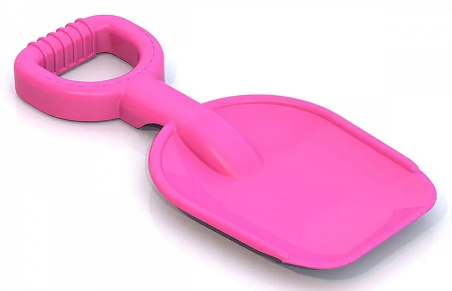 *яркие цвета, которые не тускнеют со временем, прочный безопасный пластик, крепкая ручка, гладкие контуры, длина лопаты - 36 см