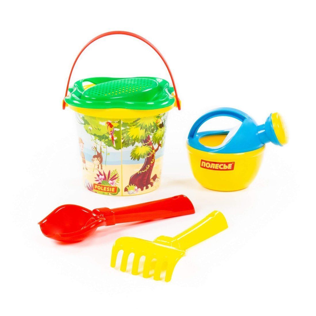 Набор №210 Полесье - это набор принадлежностей для игр в песочнице, в который входят небольшое ведерко, ситечко-цветок, грабельки, совок и небольшая лейка. Все предметы набора изготовлены из прочной высококачественной пластмассы и окрашены безопасными яркими красками. Игрушки не имеют острых углов, поэтому с ними могут играть даже самые маленькие дети. Забавный дизайн и яркая расцветка набора поднимут настроение ребенку и сделают игру более интересной.