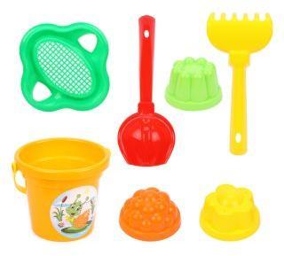 Цветовые варианты представлены в ассортименте. Размер ведёрка (ДхШхВ) составляет 12х12х10,5 см. Предметы набора изготовлены из пластмассы. Рекомендованный возраст: 3 года +