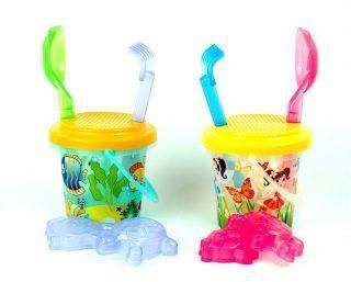 Набор для игры IML (технология вплавления рисунка в стенки изделия при ее формовании на литьевых машинах)в песочнице станет отличным спутником девочек и мальчиков во время летнего отдыха. Комплект состоит изшести предметов, каждый из них пригодится для создания ярких фигурок и сооружений: с помощью лопатки и граблей ребенок сможет набрать и разровнять песок, а формочка поможет украсить скульптуры. В ведро очень удобно набирать воды для скрепления песочных творений. Ребенку наверняка понравится играть с таким набором, ведь его составные такие яркие и интересные!