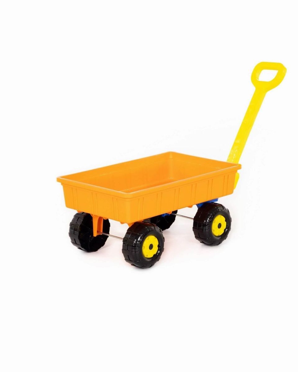 Название этой тележки от фабрики «Полесье» говорит само за себя, ведь она станет незаменимой игрушкой для весёлого времяпрепровождения малыша на даче. Кроме того, тележка отлично подойдёт для игр в песочнице и дома. Конструкция игрушки предполагает наличие 4- колёс на прочных железных осях, также для удобства перемещения предусмотрена ручка. Тележка представлена в двух расцветках: синей и оранжевой. В ней будет удобно хранить и перевозить другие игрушки.