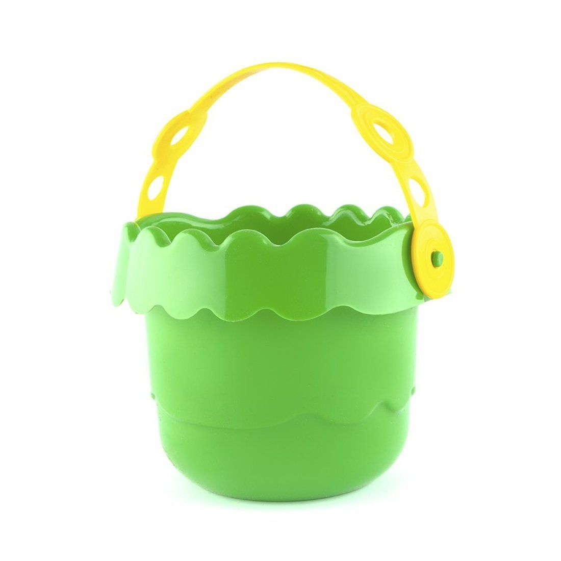 В такое ведро из легкого и прочного пластика удобно сложить небольшие игрушки, которые понадобятся малышу во время прогулки. Край этого яркого ведерка украшен изящным волнистым орнаментом.