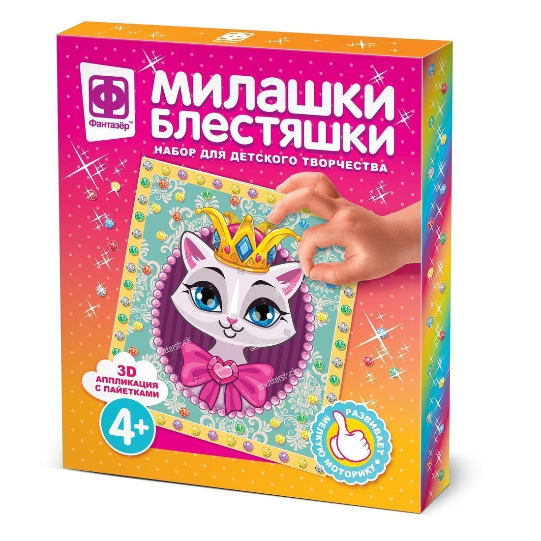 картонная основа, комплект картонных деталей, клеящие элементы, пайетки, крепеж.