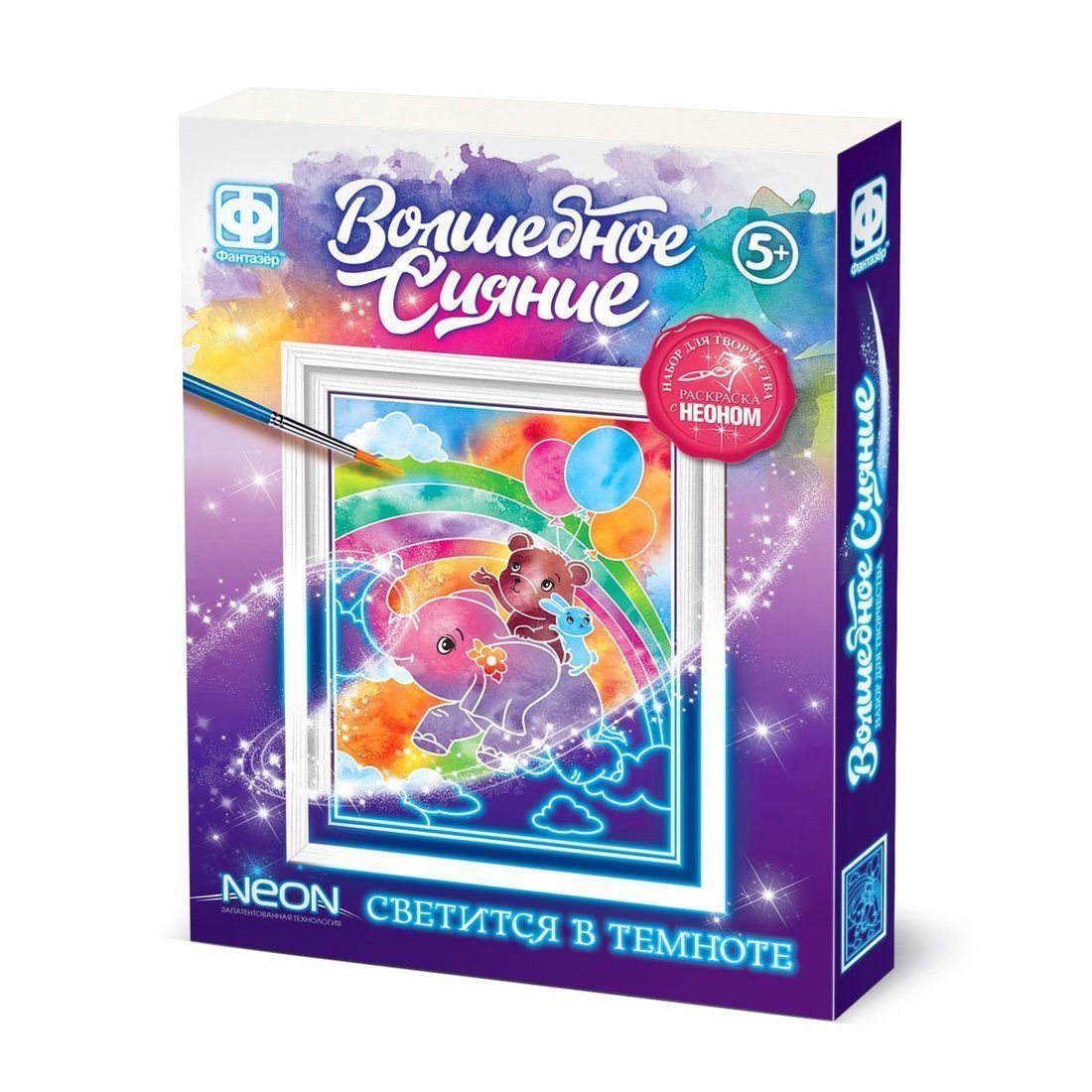 Наша волшебная акварель получила ещё одно свойство - она светится в темноте! Внутри упаковки вы найдёте акварельные краски и лист для раскрашивания со специальным контуром. Этот контур незатекаемый для краски, поэтому вы смело можете раскрашивать картинку либо как захочется по цвету, либо вообще радужной заливкой. Контур всё равно проявится и сделает картинку красивой. Помимо этого, если посмотреть на картинку ночью, контур начнет светиться и превратит её в настоящее чудо - она будет светиться в темноте! И даже если она потом погаснет, не расстраивайтесь! Утром зарядите её новой порцией света! В наборе: бумага с нанесенным неоновым контуром, краски акварельные, кисточка, краска акриловая для рамки, бумажное паспарту, деревянная рамка. Состав: дерево, картон, краски, кисть, бумага. Рекомендовано для детей от 5-ти лет.