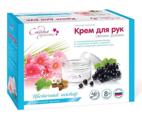 Набор для творчества серии "Студия красоты" - отличная возможность своими руками создать крем для рук под названием "Цветочный нектар". Создание косметического средства не составит труда, поскольку в комплекте имеется все материалы: необходимые вещества и предметы. Готовым кремом можно пользоваться или преподнести в качестве презента.