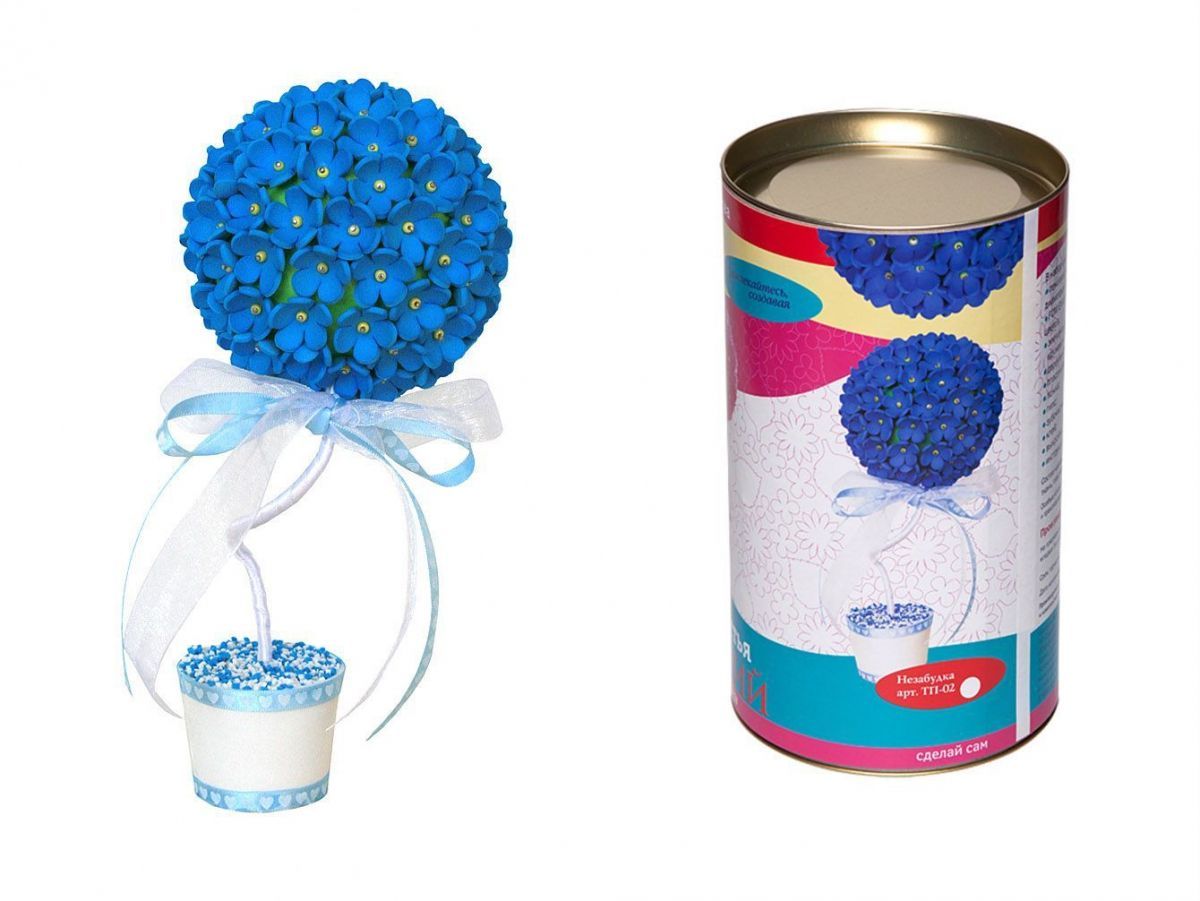 Набор для творчества топиарий "Незабудка" поможет вам освоить новый вид прикладного творчества - создания топиария. Топиарий - это декоративное деревце, сделанное из различных подручных средств (начиная от лоскутов ткани и бумаги, заканчивая зернами кофе). Деревце станет прекрасным сувениром и украшением интерьера.