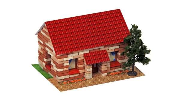 Основным строительным материалом в наборе является кирпич (размером ~10x20x4мм), который изготовлен из полимерного материала (вспененный пенополистирол). С виду он очень похож на каменный кирпичик, но очень легкий по весу, что позволяет при сборке получить облегченное строение. Соединение элементов производится с помощью клея ПВА. При сборке нет пыли и грязи. Кирпич можно разрезать ножницами или канцелярским ножом.