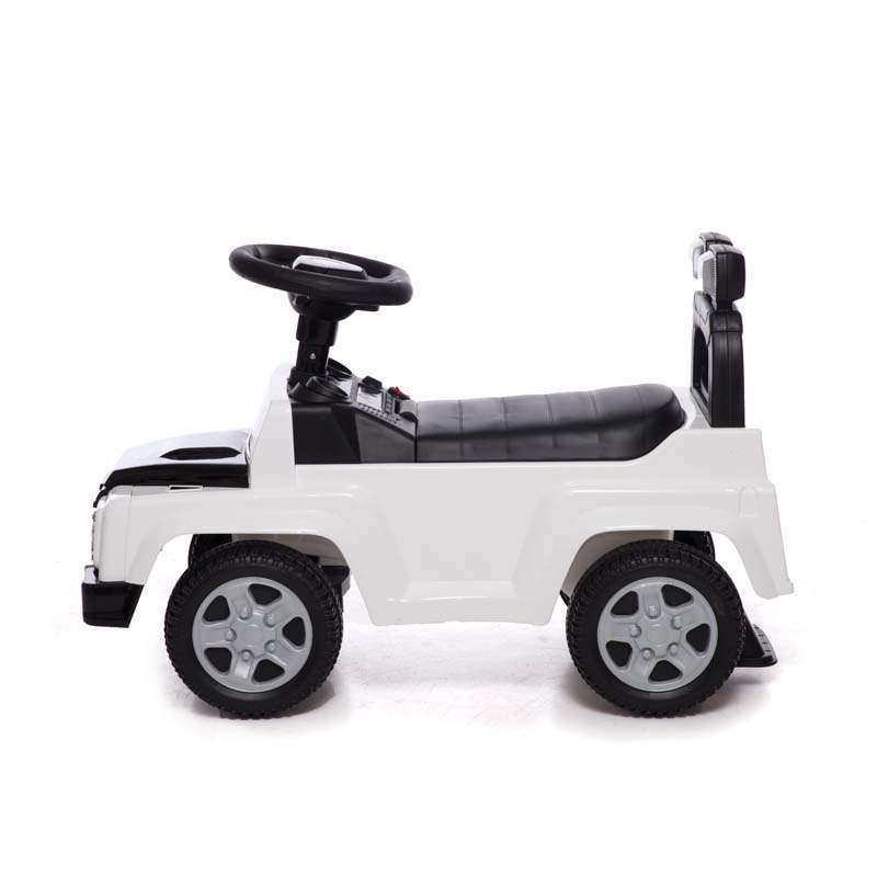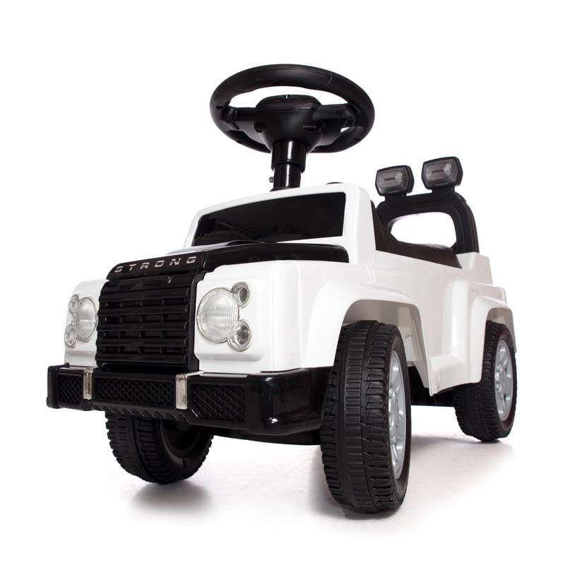 Каталка имеет эргономичную форму с закругленными углами, что делает ее безопасной в использовании. Руль снабжен кнопками, которыми можно переключать веселые мелодии, если ребенок заскучал. Кроме этого, присутствуют световые эффекты на приборной панели и передних фарах.