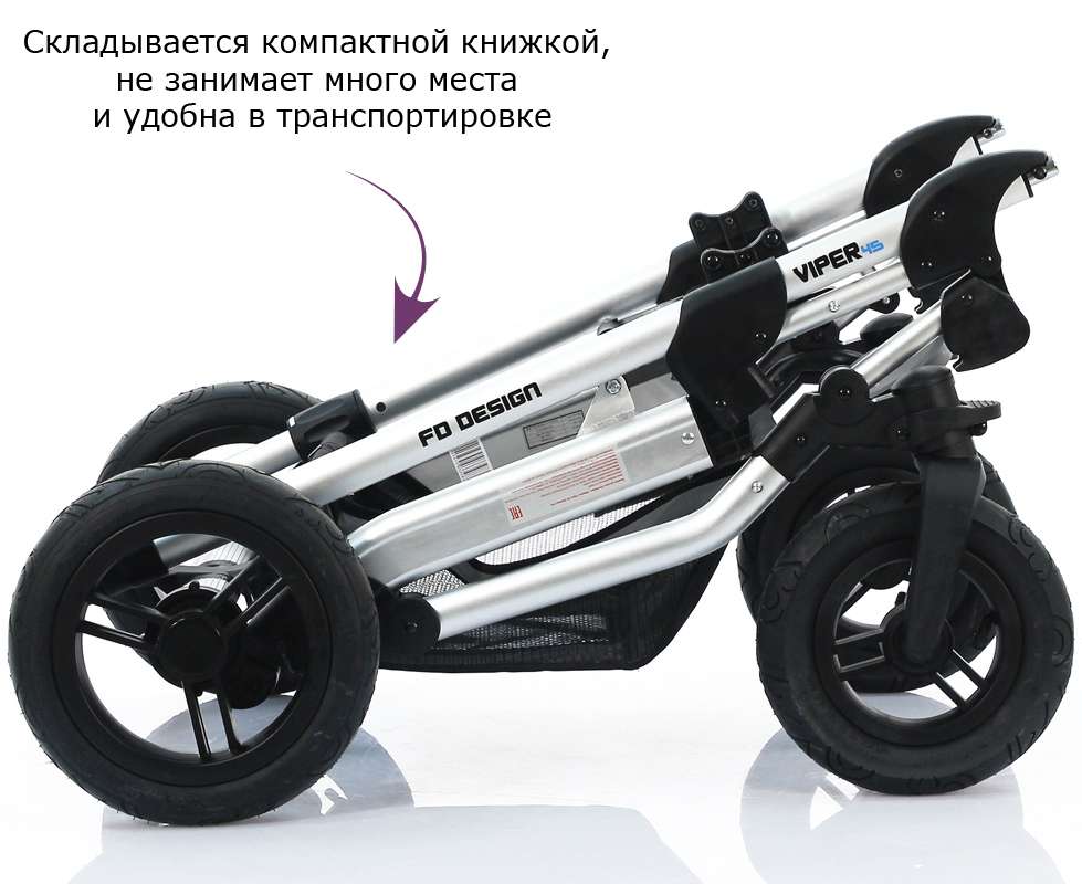 Складывание — одна из проблем при выборе коляски. С Viper все по-другому: сложить коляску проще простого. Тем более, что она складывается в компактную книжку, а если снять колеса, занимает вообще минимум места.