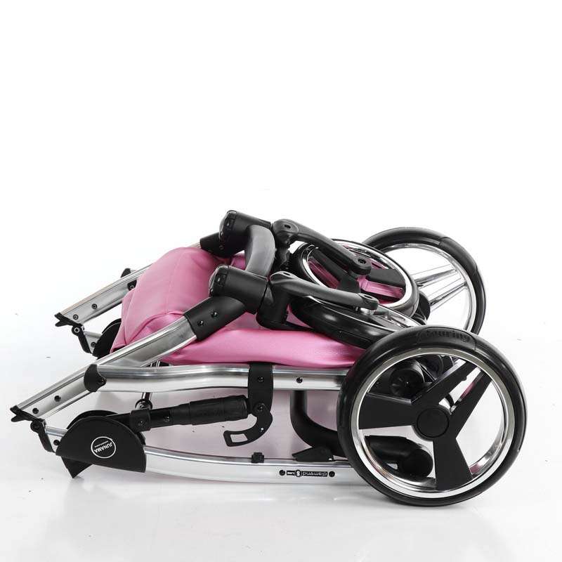 Отдельно необходимо отметить раму коляски, исполненную в стиле металлик в трех самых популярных цветах: золото, серебро и медь. Пружины амортизаторов скрыты от загрязнений в специальном корпусе, а сама рама выполнена с дополнительными ребрами жесткости, придающими коляске FLUO LINE особенную устойчивость на дороге и плавный ход.