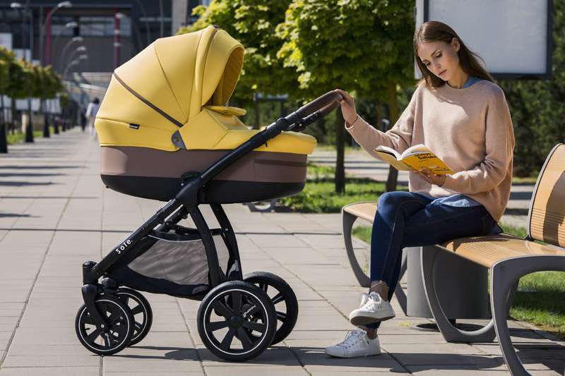 Практичное и удобное шасси: ненадувные колеса (сделаны из резины с силиконовым наполнителем), ручка регулируется, имеет накладку "под кожу", передние колеса поворотные с возможностью блокировки. Складывается Noordi Sole Sport NB компактной книжкой и удобна для транспортировки.