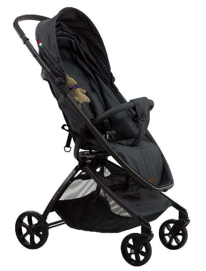 Инновационная рама Farfello Airy легко складывается в два движения. Капюшон XXL защищает ребенка от неблагоприятных погодных условий. Вместительная корзина, просторное спальное место с регулируемой спинкой, а также пятиточечные ремни безопасности делают AIRY эффективной, маневренной и удобной прогулочной коляской как для малыша, так и для родителей. Коляска имеет утепленный полог для ножек и комплектуется дождевиком и москитной сеткой.