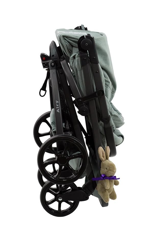 Инновационная рама Farfello Airy легко складывается в два движения. Капюшон XXL защищает ребенка от неблагоприятных погодных условий.