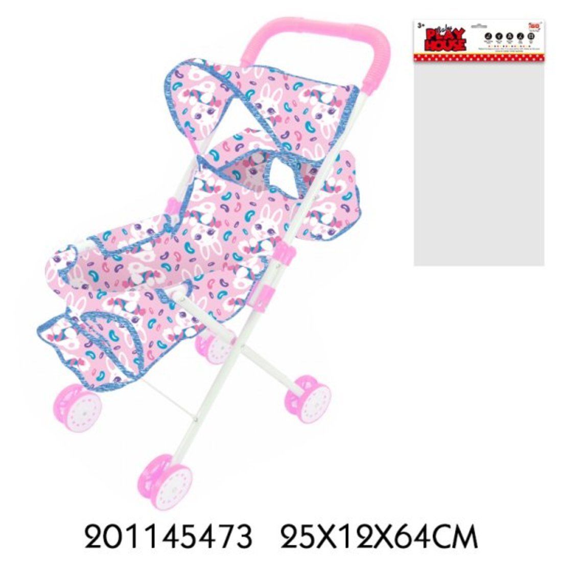 Коляска прогулочная Зайка двухместная с крышей, металл., пакет