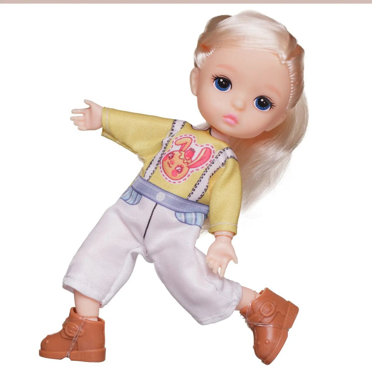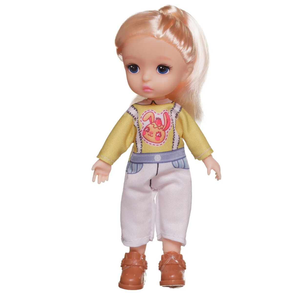 Кукла Junfa 13 см в желто-белом комбинезоне