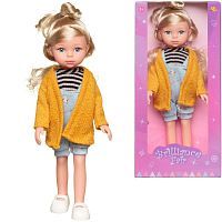 Кукла Мила Модница 8 станет прекрасной подругой для вашего ребенка. Ее современный образ принцессы с длинными, волнистыми волосами и нарядной одежде придется по душе вашим детям. У Милы красивые глазки, пушистые ресницы и длинные мягкие волосы, которые можно завивать, расчёсывать и укладывать в разные причёски, меняя образ куклы. В комплект одежды входит: голубое платье без рукава с отделкой из сетки на юбке платья, туфельки, повязка на голове. Элементы костюма, которые легко снимаются и надеваются, погрузят вашего ребенка в мир сюжетно-ролевых игр, в процессе которых развивается мелкая моторика и творческое воображение ребёнка. Рост куклы 35 см. Кукла не озвучена.