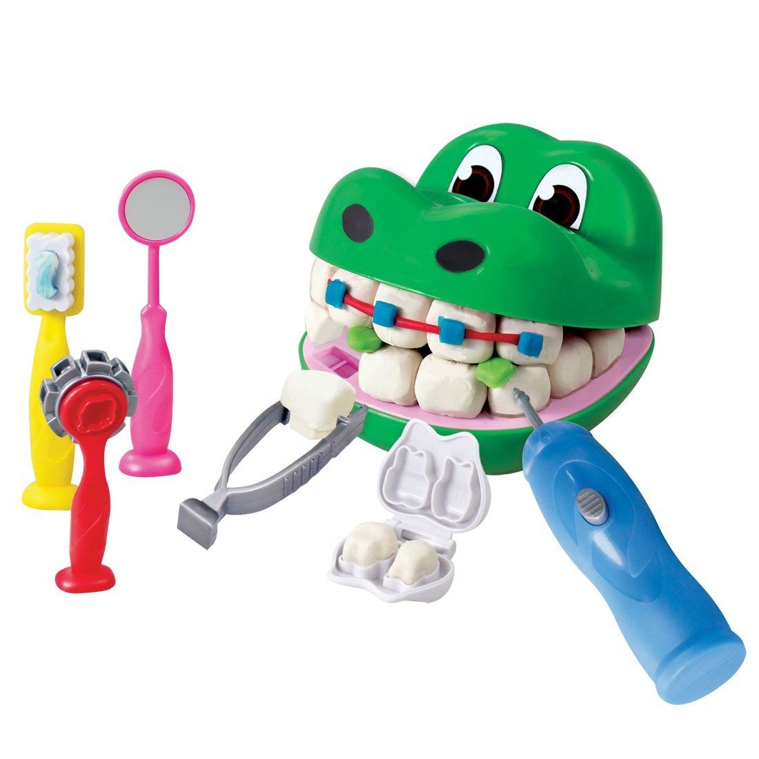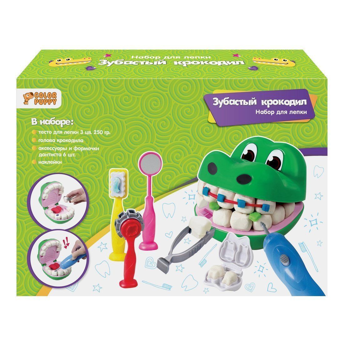 «Зубастый крокодил» – это увлекательный набор для детского творчества, с помощью которого можно почувствовать себя в роли настоящего дантиста! Сначала ребёнку предстоит слепить крокодилу язык, а затем, используя специальные приспособления, сделать ему из теста зубы и брекеты. Если у крокодильчика вдруг заболят зубы, их можно будет вылечить или удалить с помощью инструментов, входящих в состав игрового набора. А ещё зубастого крокодила можно научить чистить зубки!