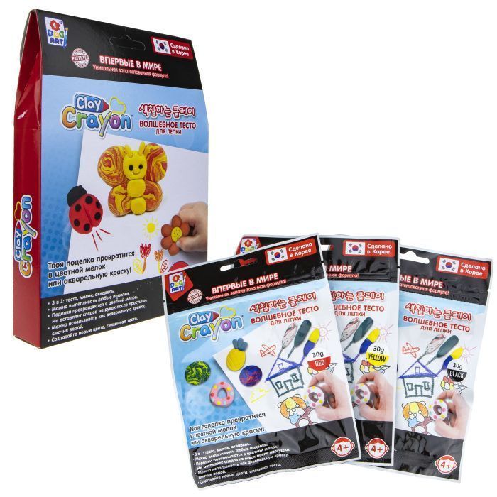 Тесто-мелки Clay Crayon - это уникальный продукт 3в 1. Из теста ребенок своими руками сможет сделать фигурку-мелок, после высыхания мелком можно рисовать, или разукрашивать. Намочите мелок водой, и используйте как краски.