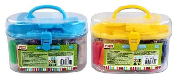 Развивающий набор для лепки в пластиковом контейнере. В набор входит тесто для лепки 20 цветов, всего 290 г, 4 формочки, вилка, ложка и ножик. В составе теста для лепки — пищевые ингредиенты: мука, соль, вода, пищевые красители. Оно безопасно для детей и не содержит ароматизаторов. На ощупь тесто очень мягкое и пластичное, но при этом оно не прилипает к рукам, к одежде или к другим поверхностям. Тесто разных цветов можно смешивать между собой. Занятие лепкой способствует воспитанию усидчивости, развивает мелкую моторику рук, пространственное мышление и фантазию. Хранить тесто нужно в пластмассовом контейнере с плотно закрытой крышкой. Цвета теста в наборах могут варьироваться.
