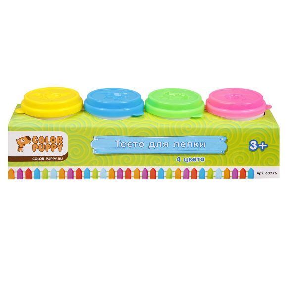 Развивающий набор для лепки. В набор входит тесто для лепки 4 цветов, всего 224 г. Каждый цвет упакован в пластмассовую баночку с крышкой. Крышки баночек имеют фигурные углубления, их можно использовать как формочки. В составе теста для лепки — пищевые ингредиенты: мука, соль, вода, пищевые красители. Оно безопасно для детей и не содержит ароматизаторов. На ощупь тесто очень мягкое и пластичное, но при этом оно не прилипает к рукам, к одежде или к другим поверхностям. Тесто разных цветов можно смешивать между собой. Занятие лепкой способствует воспитанию усидчивости, развивает мелкую моторику рук, пространственное мышление и фантазию. Хранить тесто нужно в пластмассовом контейнере с плотно закрытой крышкой. Цвета теста в наборах могут варьироваться.