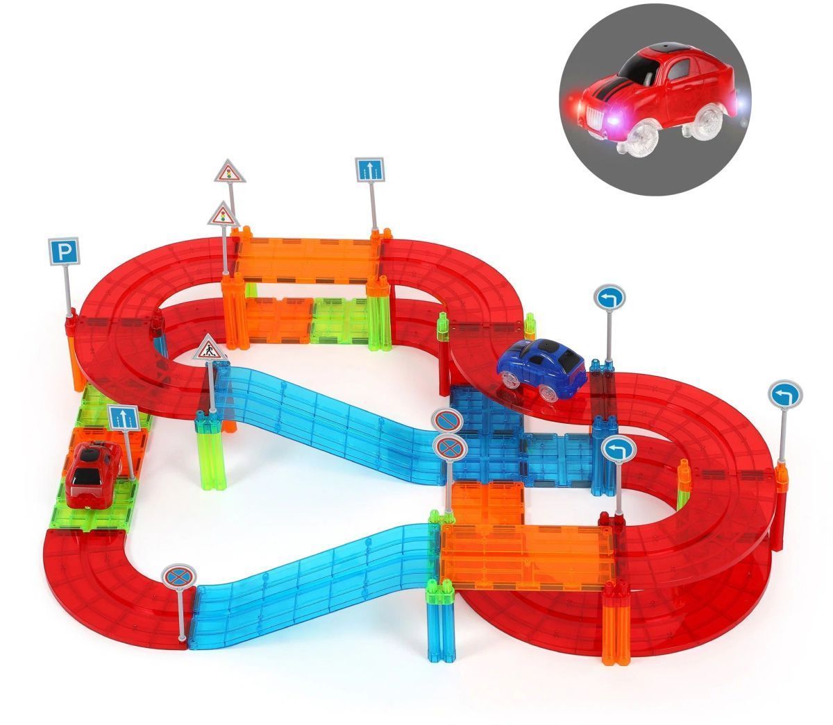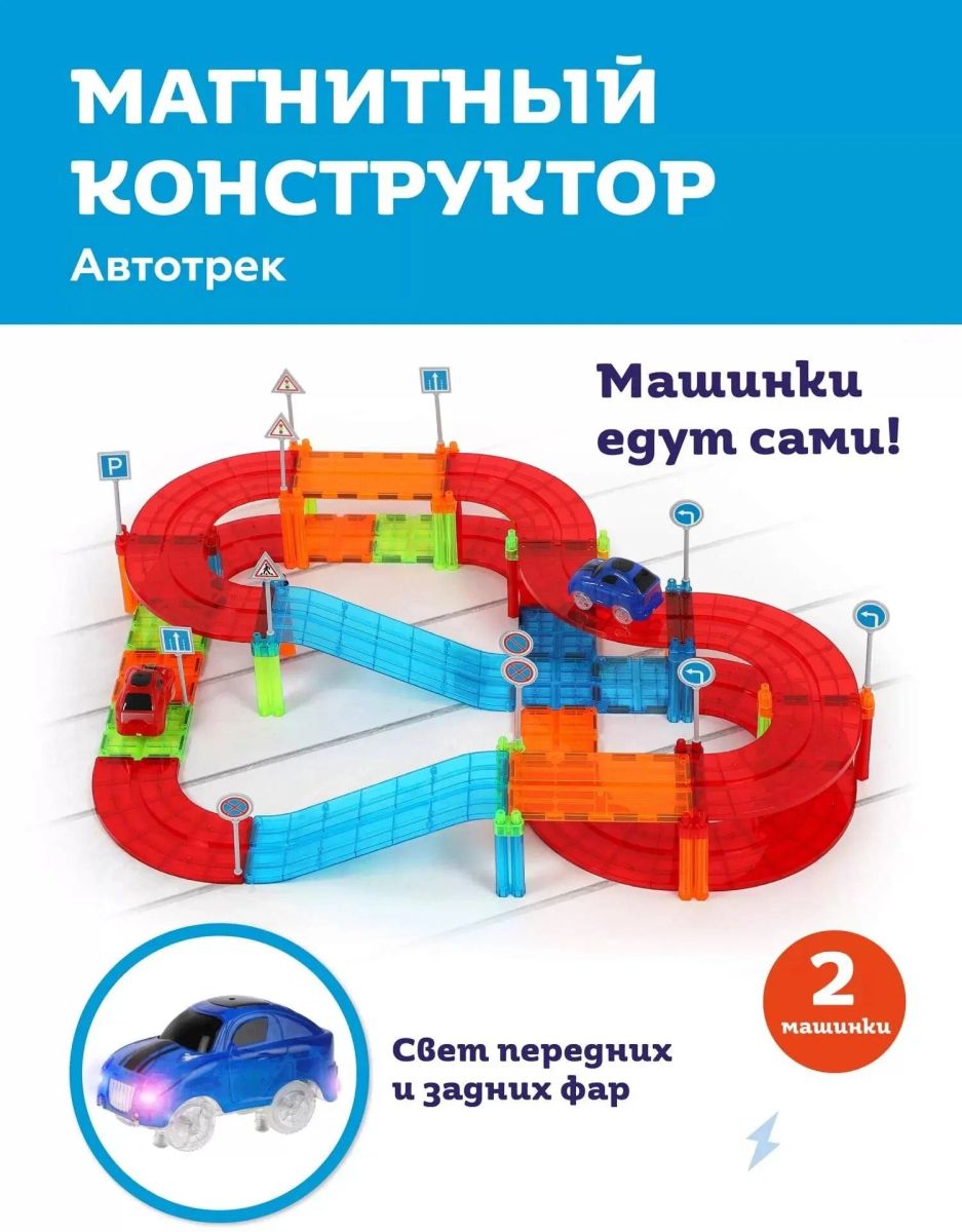 Магнитный конструктор от ТМ On Time превратит обычную игру в машинки в увлекательную логическую задачу для развития пространственного мышления! В комплекте – 72 детали, из которых ребёнок сможет построить захватывающий автотрек. Элементы конструктора нужно соединить между собой так, чтобы дорога замкнулась как настоящая гоночная трасса. Машинки, которые также входят в состав игрового набора, будут ездить по кругу с включенными передними и задними фарами. Ребёнок будет с большим удовольствием наблюдать за их движением!