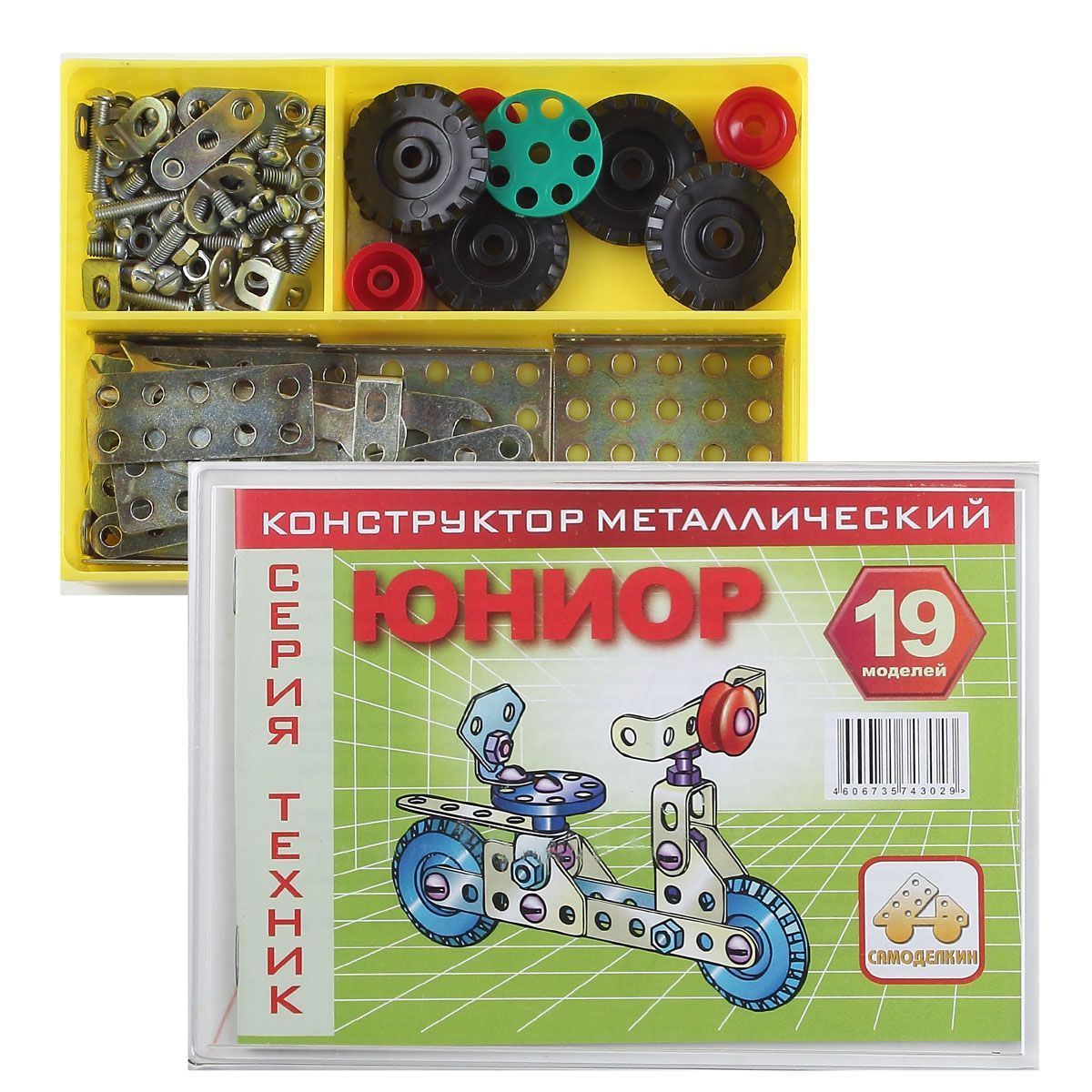 Металлический конструктор Юниор от ТМ Самоделкин состоит из 124 деталей с болтовым соединением. Игрушка способствует развитию воображения, пространственных представлений, мелкой моторики пальцев и координации движений обеих рук.