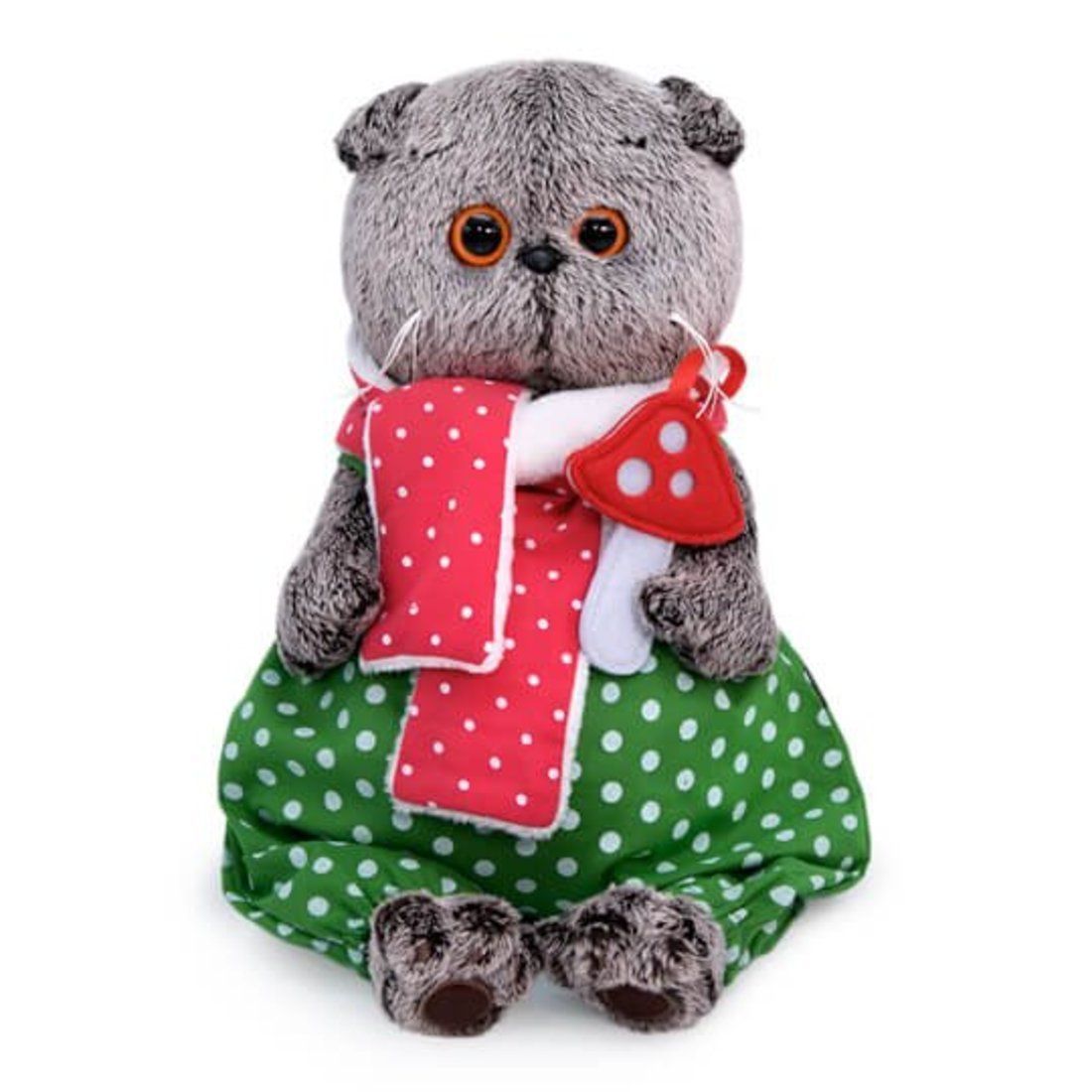 Милый котёнок Басик представлен в костюмчике мухомора. Этот малыш очень озорной и весёлый: он просто обожает, когда с ним играют и берут его с собой в гости, любит ласку, любовь и внимание. У котика мягкая шёрстка роскошного дымчато-серого цвета, симпатичная мордочка и большие круглые глазки.