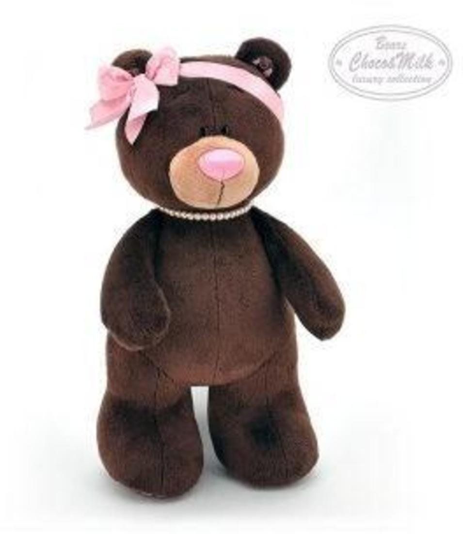 Мишка-девочка Choco Milk - очаровательная мягкая игрушка с атласной ленточкой на голове и жемчужной ниточкой на шее. Прелестная медведица обожает находиться в центре внимания и привлекать взгляды, что, впрочем, у неё получается без труда. У мишки очень мягкая и приятная на ощупь шёрстка тёмно-коричневого цвета, её буквально не хочется выпускать из рук! Высота игрушки составляет 25 см. Изделие изготовлено из искусственного меха, пластмассы и текстильных материалов; набивка сделана из полиэфирного волокна и полиэтиленовых гранул. Рекомендованный возраст: 3 года +