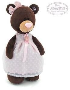 Milk - очаровательная медведица, которая, как и любая девочка, обожает новые наряды! На этот раз на Milk надето воздушное розовое платье, украшенное брошью с лентами, на голове красуется розовый бант.
