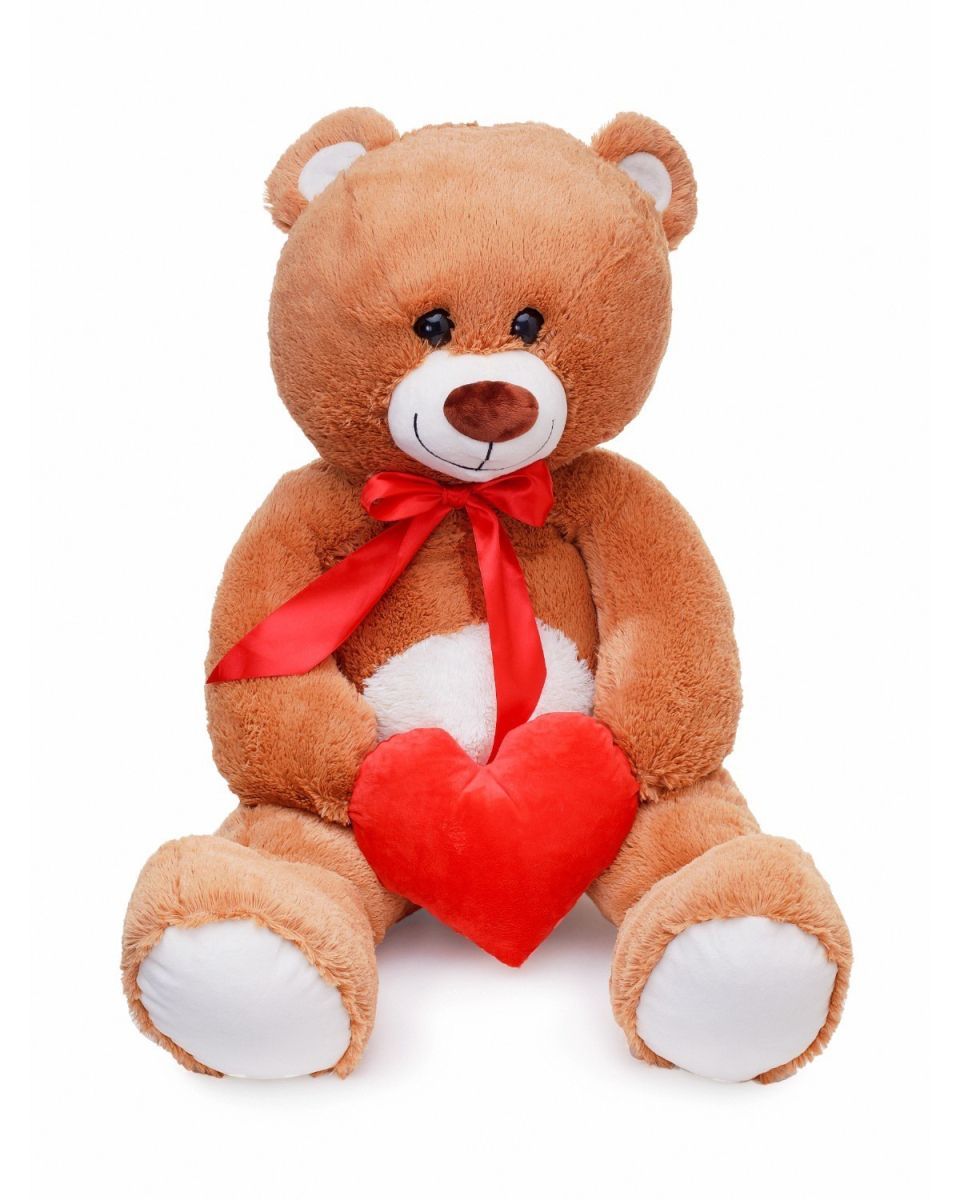 Это — медвежонок с алым сердцем. Его шелковистая шерстка очень приятна на ощупь. Медвежонок станет настоящим украшением детской комнаты!