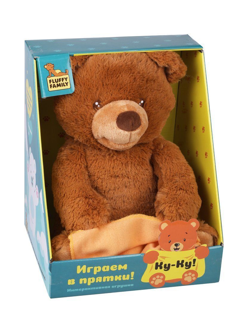 Поиграем в прятки вместе с интерактивным мишкой? Он разговаривает (воспроизводит 10 фраз: «Привет, малыш!», «Где ты?», «Ку-ку», «Я нашел тебя!» и др.), звонко смеется, а еще 4 раза поднимает и опускает лапки! Эта игрушка принесёт большую пользу для развития малыша: интерактивные игрушки побуждают маленьких детей к определённым действиям, формируя коммуникативные навыки и развивая воображение. Ну а о ярких эмоциях, получаемых вместе с очаровательным мягким мишкой, не приходится говорить!