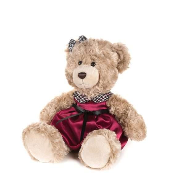Мягкая игрушка Maxitoys Мишка Моника в красном платье с клетчатым воротничком, 20 см