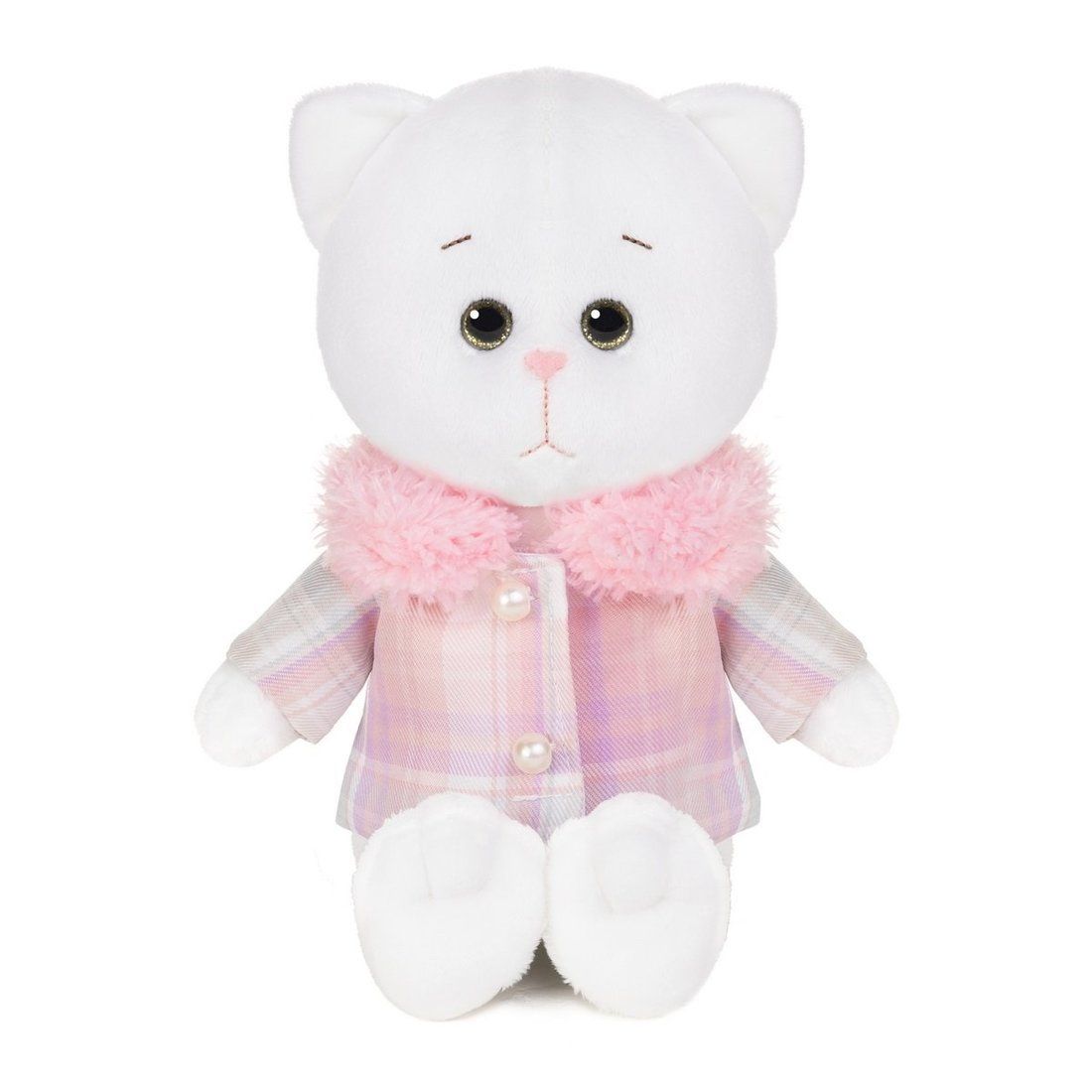 Кошечки Мышель в своем очаровательном нежно-розовом пальто это воплощение изысканности и стиля. Пальто украшено перламутровыми пуговицами, придающими ему изысканный и роскошный вид. Яркий пушистый воротник выглядит как мягкое облако, придающее образу кошечки особую уютность. Одежда кошечки Мышель радует глаз нежным оттенком розового, который подчеркивает ее привлекательность и женственность. В таком наряде Мышель выглядит как изысканная леди, готовая завоевать сердца своим обаянием и элегантностью. Игрушка идет в комплекте с подарочной коробкой.