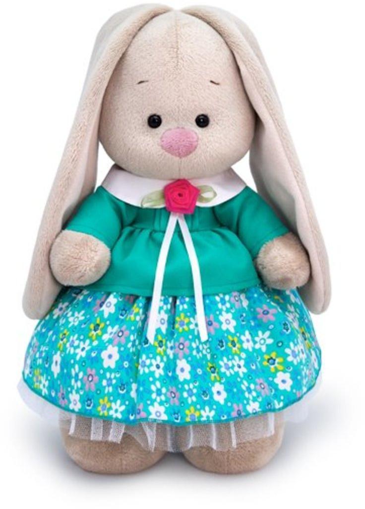 Зайка Ми - это мягконабивная игрушка, которая может стать идеей для трогательного и запоминающегося подарка девочке. Ми одета в бирюзовую курточку, украшенную белым воротничком и красной розой, и в голубую юбку с принтом в разноцветный цветочек. У зайки настолько милый образ, что в неё сложно не влюбиться с первого взгляда!