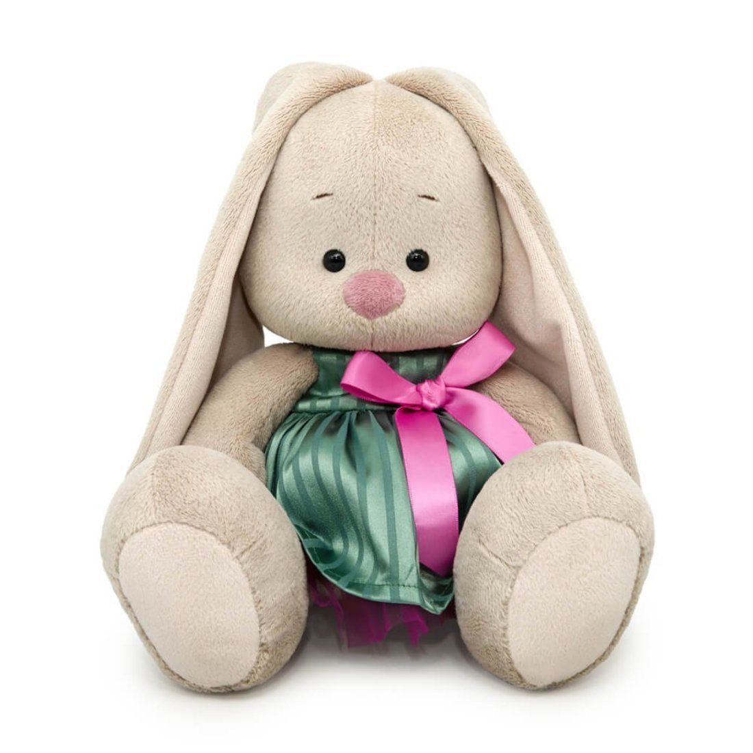 Зайка Ми –­ это мягконабивная игрушка, которая может стать идеей для трогательного и запоминающегося подарка девочке. У Ми настолько милый образ, что в нее сложно не влюбиться с первого взгляда! Зайка в очень красивом по цвету платье из шелковистого крепа с выработкой в полоску. Платье цвета полыни без рукавов, отрезное по талии, с нижней юбкой из сеточки цвета спелой вишни, украшено красивым атласным бантом цвета карминовой розы. Игрушка поставляется в открытой коробке.