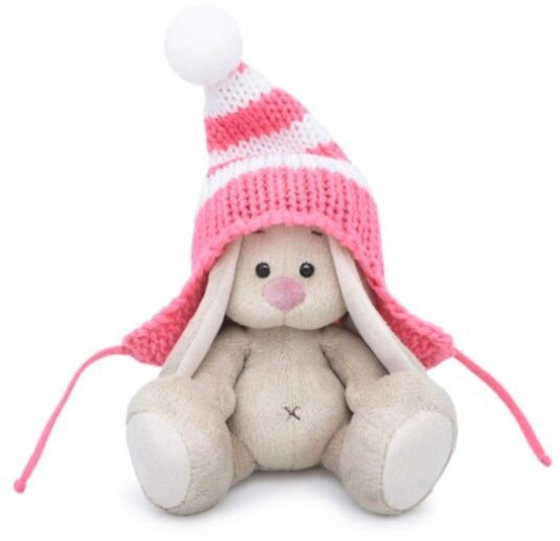 Зайка Ми в полосатой розовой шапке (малыш) 15 см