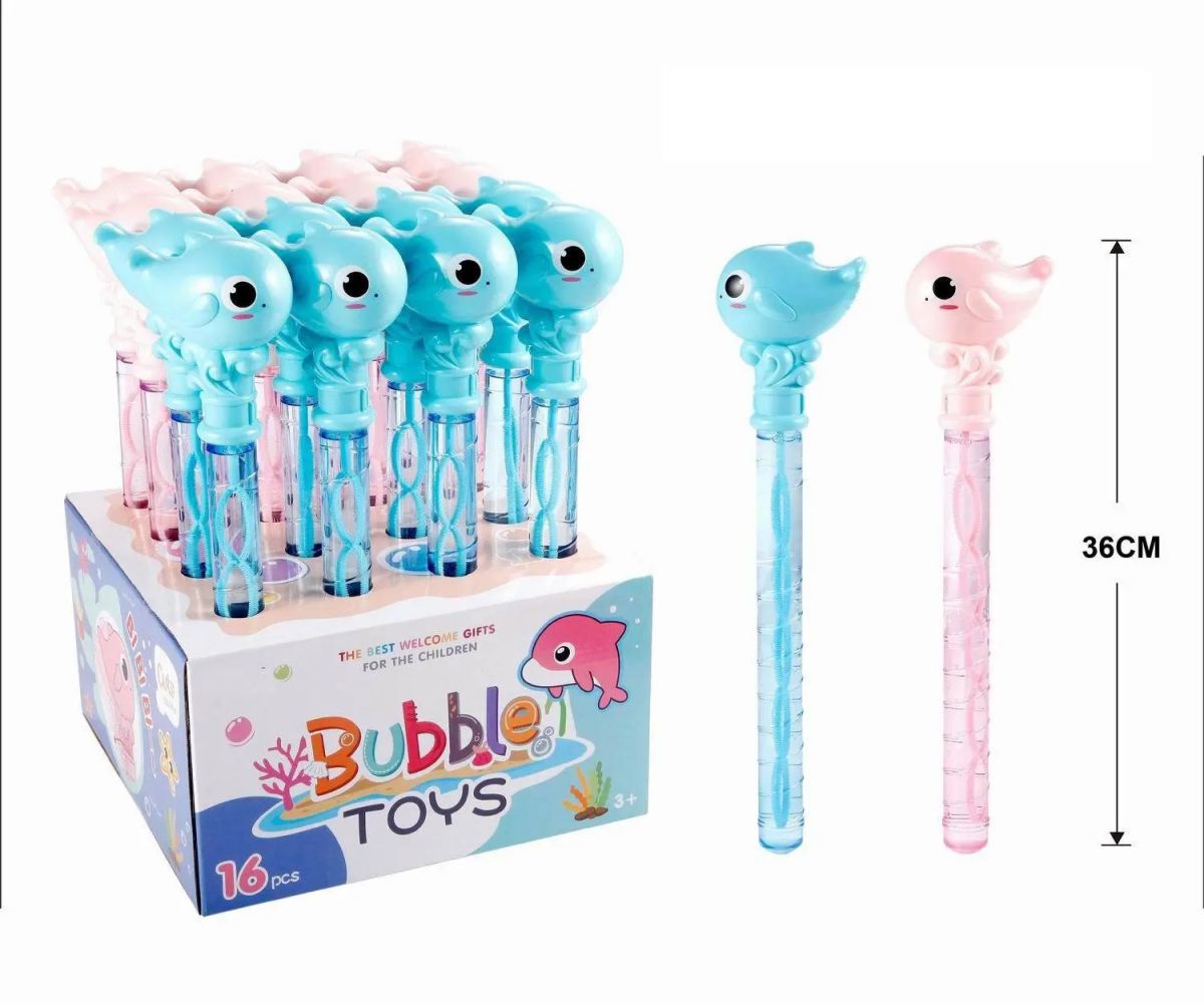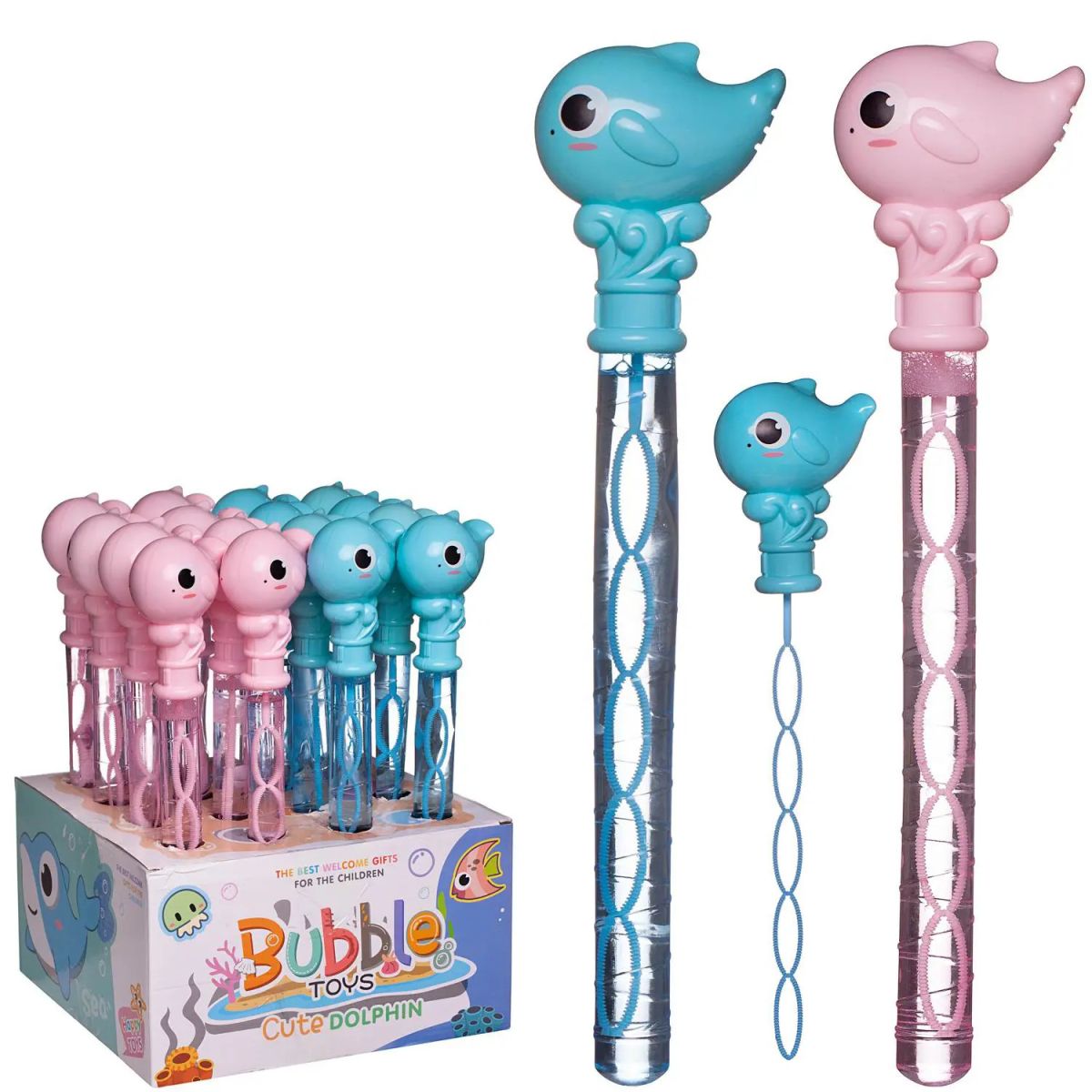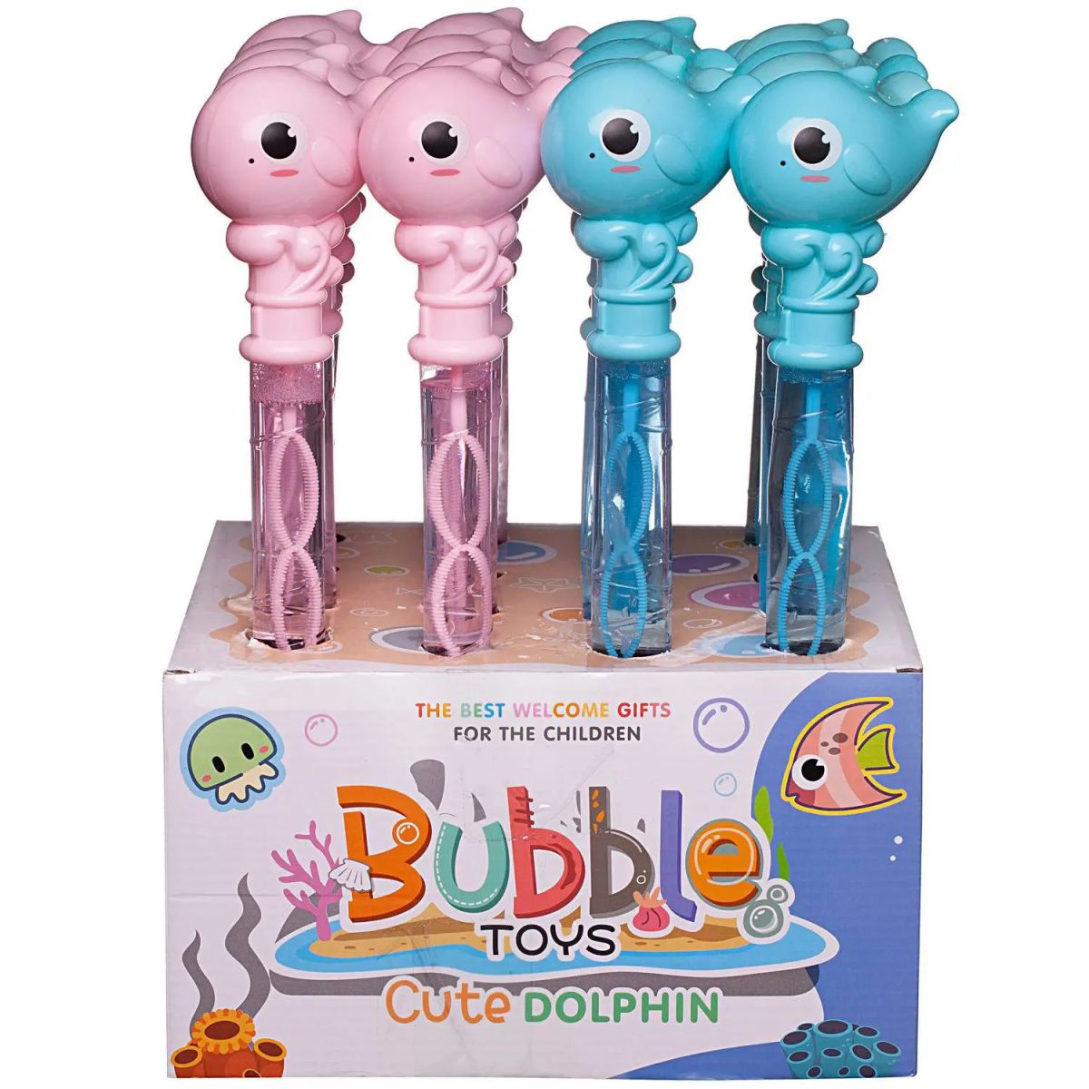 Мыльные пузыри представлены в ассортименте, в голубом или розовом цвете.