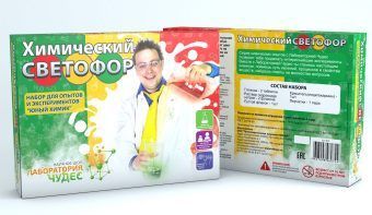 Жидкость​, подобно светофору, самостоятельно меняет цвет при помешивании сначала с синего на зелёный, потом на красный, и затем на желтый!
