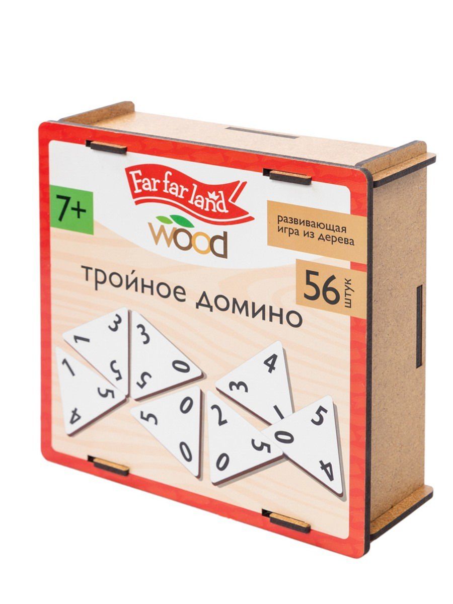 Деревянное тройное (треугольное) домино в деревянной коробке – это усложнённая версия классической и многими любимой игры для 2–6 человек. Состав: треугольные фишки (триксы) – 56 шт. (3,8 х 3,8 х 3,8 см), текстильный мешок – 1 шт. (17,5 х 12 см), правила игры. Материал: дерево. Фишки окрашены в белый цвет. Игра в тройное домино позволит не только весело провести время, но и развить логику и математические способности.