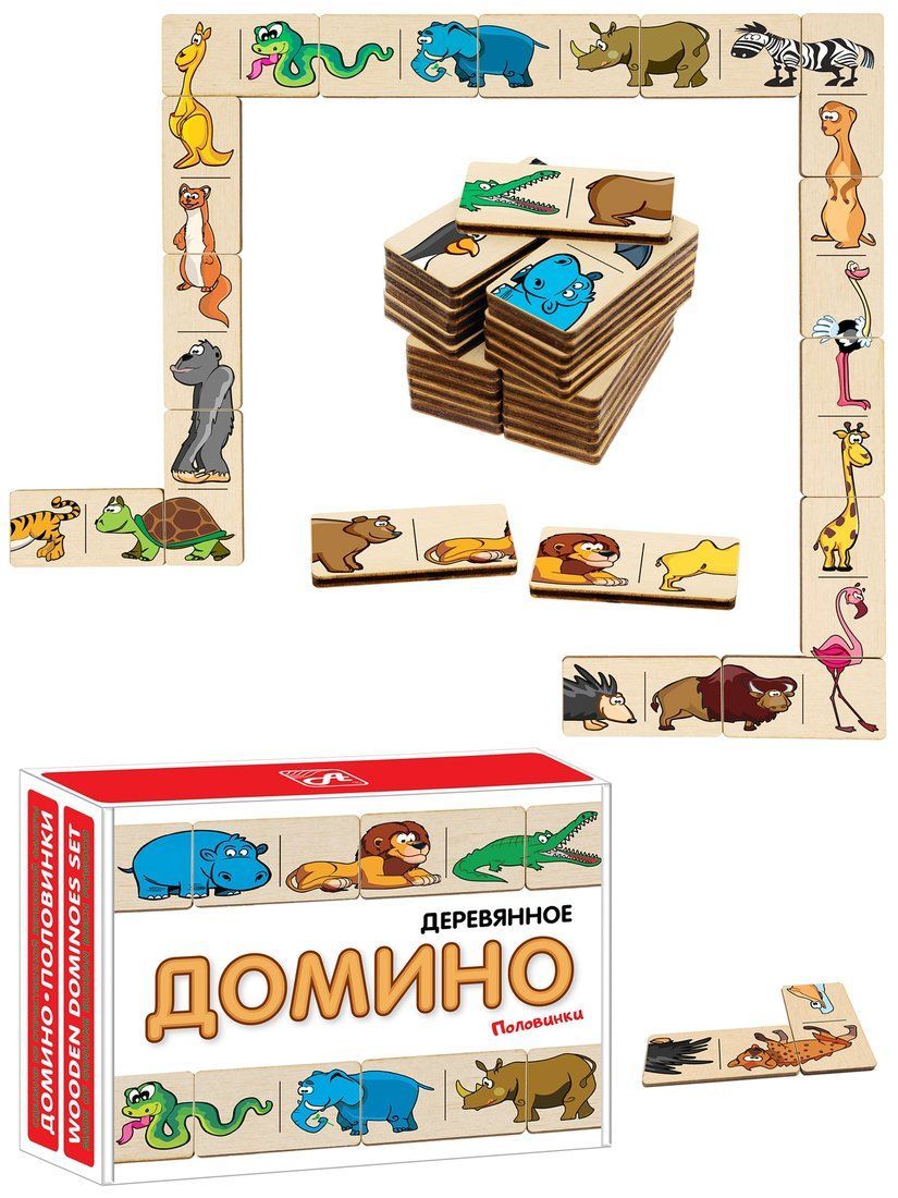Игра БОЛЬШОЕ ДОМИНО для детей - отличная развивающая игрушка из экологичного материала - российской березовой фанеры. Фишки большого размера - 30х60 мм - прекрасно подойдут даже для самых маленьких игроков. Малышу удобно держать такую фишку. Рисунки на ней - яркие и большие. С этой игрушкой можно играть не только дома, но и эффективно использовать для занятий в детском саду. Играя, ребенок развивает целый спектр навыков: моторику, логику, воображение, а также изучает окружающий мир, счёт, арифметику и цвета.