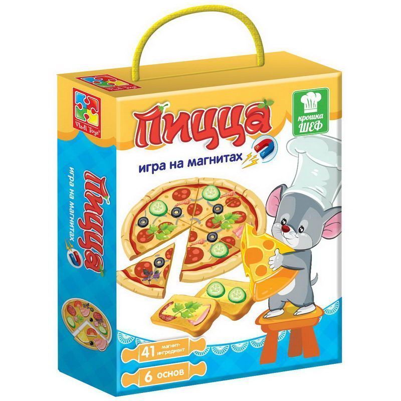 Набор «Пицца» повторяет формы и кусочки уже знакомых ребенку продуктов. Задача малыша пофантазировать и приготовить такую пиццу, которую он сам бы съел с удовольствием, так вы узнаете о гастрономических предпочтениях ребенка, а в перспективе вместе сможете повторить рецепт с настоящими ингредиентами. А может быть малыш захочет приготовить тосты? И это тоже легко осуществить вместе с нашей магнитной игрой! Ингредиенты набора легко крепятся и отсоединяются, имеют более сотни различных комбинаций и рецептов. Интересные продукты и никаких ограничений. А самое приятное, что ваша кухня гарантировано, останется чистой.