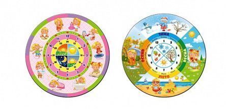 Игра настольная. Часики картонные со стрелками ДЕВОЧКА (пакет европодвес)