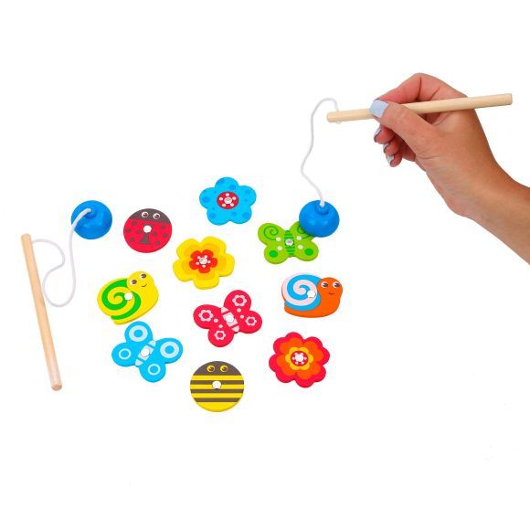 Длина удочек составляет 35 см, длина фигурок: 4-5 см. Игровой набор изготовлен из натуральной древесины, все предметы тщательно отшлифованы и окрашены безопасными красителями. Рекомендованный возраст: 3 года +