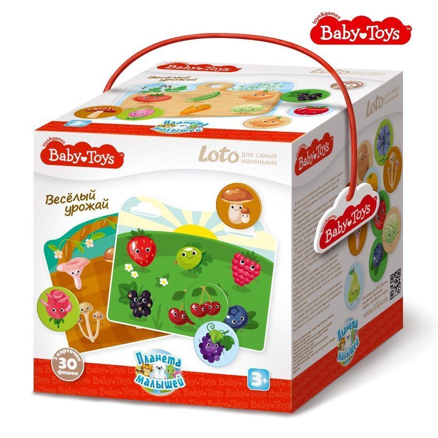 Детское лото «Веселый урожай» серии «Baby Toys» рекомендуется для самых маленьких (3+). Эта простая и увлекательная игра может стать незаменимым помощником в воспитании и развитии ребенка. Поможет пополнить словарный запас, разовьет внимательность, память и мелкую моторику малышей.