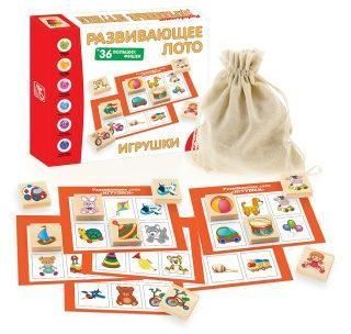Лото Игрушки (36 деревянных фишек + 6 карточек)