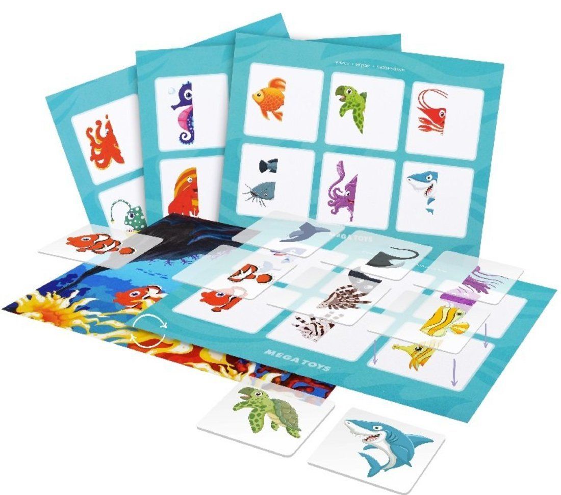 Набор обучающих игр разработан педагогами дошкольного образования с учётом возрастных особенностей малышей и дошкольников. Тема «Подводный мир» подходит для знакомства и изучения персонажей. Ребёнок узнает, какие бывают животные и их особенности, подробное описание и интересные факты. 24 животных и 12 развивающих игр, входящие в комплект набора, обязательно пополнят знания малыша в процессе увлекательной игры. Внутри набора есть методическое пособие, которое научит обобщать и анализировать, заложит основы структурного мышления. Один из принципов игры — «Найди половинку» при помощи прозрачных карточек. Данная игра поможет в развитии зрительного восприятия, внимания и пространственного мышления.