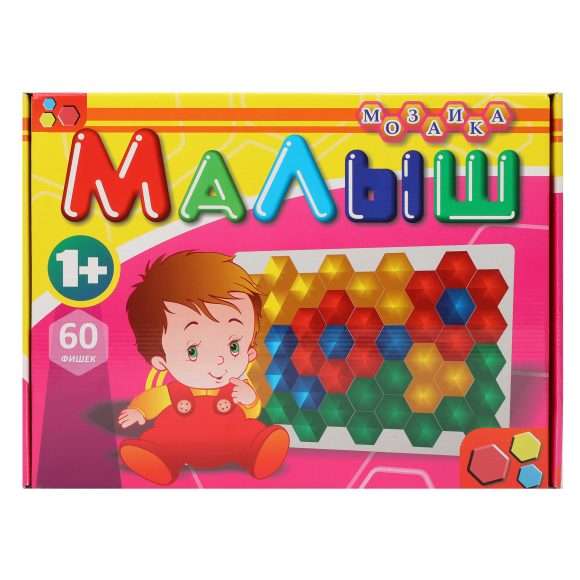 Игровой набор для создания мозаики «Малыш. Тип 1» включает в себя 60 фишек 4-х разных цветов и игровое поле. Из разноцветных фишек можно выложить самые разнообразные узоры, какие только подскажут ребёнку фантазия и воображение. Идеи готовой мозаики приведены на обороте упаковки. Благодаря достаточно крупному размеру фишек, из них будет удобно творить даже самым маленьким детишкам.